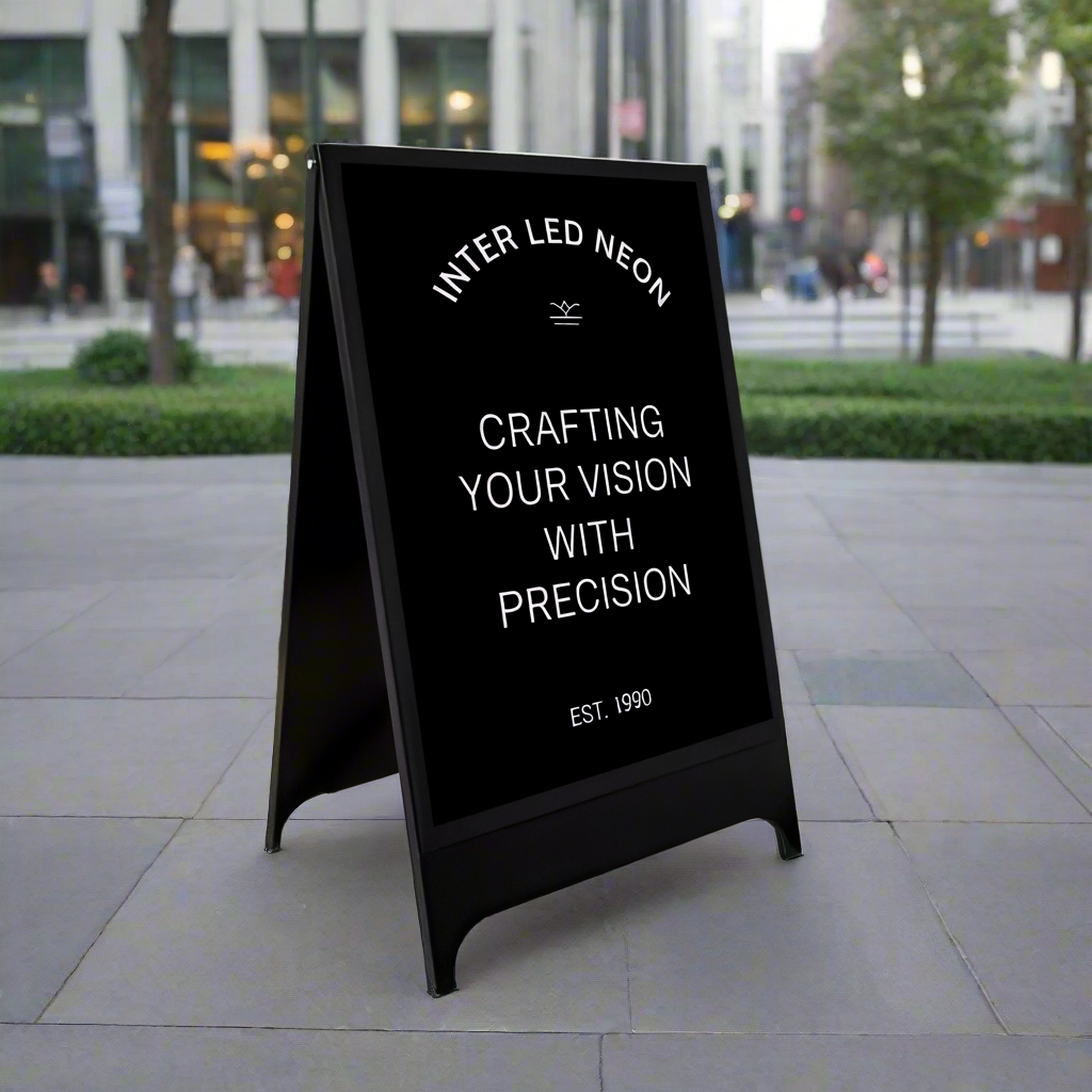 This is our best selling metal 'A' board Sign. Strong and sturdy and like all our products it's also made in the UK. This minimalist design is great for all shops, boutiques, bakeries, galleries, gyms, coffee shops, cafés, restaurants, bars, butchers, fish mongers, florists, barbers & haid dressers and hotels.