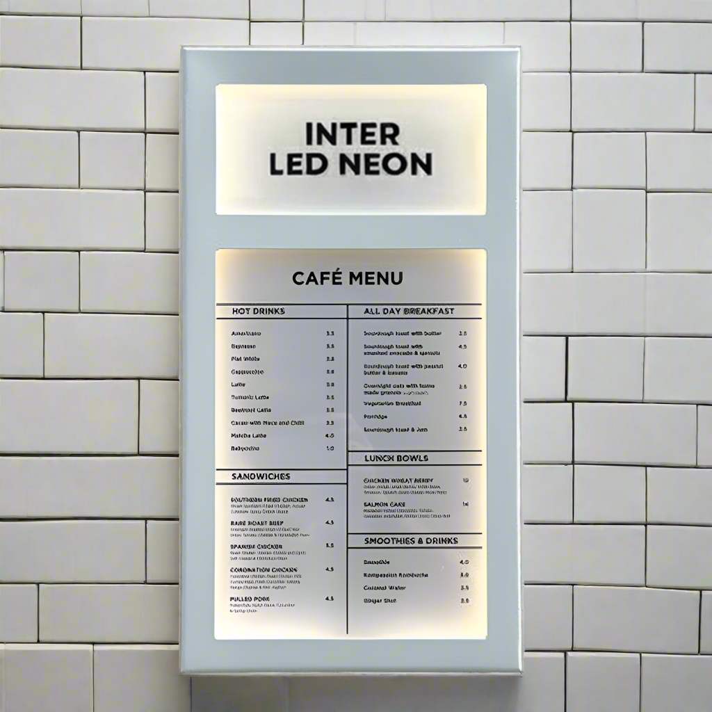 Our personalised menu cases are great for cafés, coffee shops, bars, restaurants and hotels. Fitted with an easily removable front panel, no fiddly locks here. The branded panel is illuminated so you can add your design or logo.